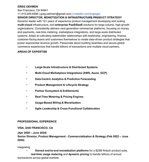 Greg Oehmen is a product leader specializing in payments, B2B cloud platforms, and SaaS infrastructure, driving growth through innovative solutions and cross-functional team leadership.
